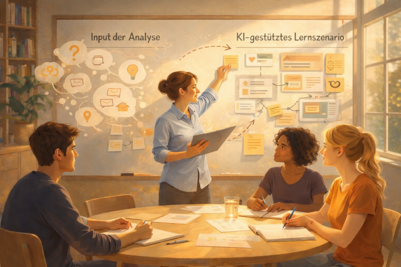 Genau hier setzt unser neuer Use Case „KI-gestützte Entwicklung von Lernszenarien“ an. Er zeigt, wie Lehrende die Technologie als „Didactic Design Assistant“ nutzen können, um datenbasierte und prinzipiengeleitete Lernszenarien zu entwerfen. Die KI greift dabei auf die bereits ausgewerteten Lernbedarfe aus dem vorherigen Use Case zurück und übersetzt diese in konkrete, umsetzbare Entwürfe – immer unter der Prämisse, dass die pädagogische Verantwortung beim Menschen bleibt.
